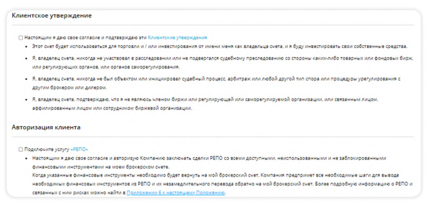 6. Далее необходимо согласиться с условиями брокера, иначе он не позволит открыть брокерский счет. После нажать «я согласен».