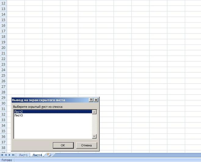 Как открыть скрытый лист