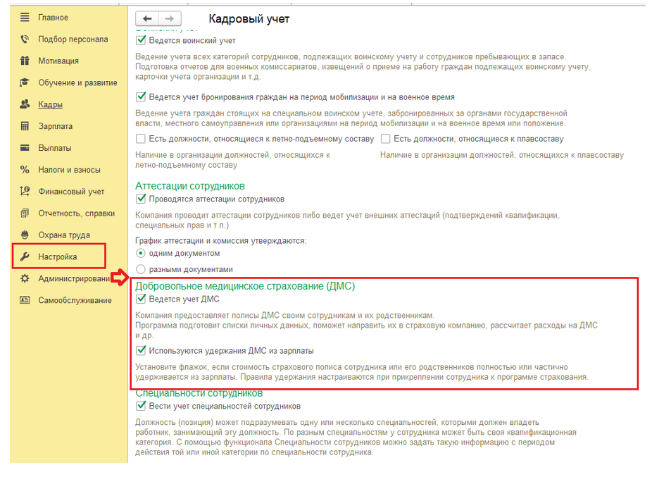 Как отразить дмс в 1с