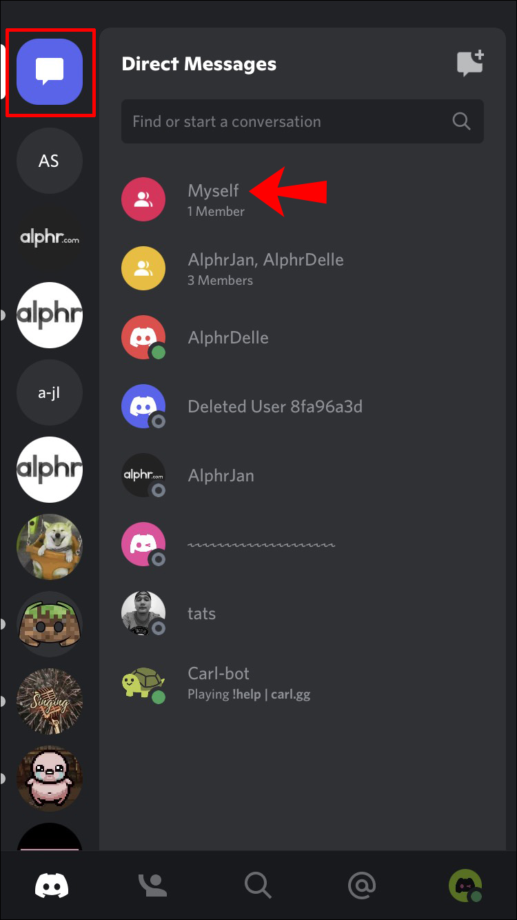 Как писать самому себе в дискорде