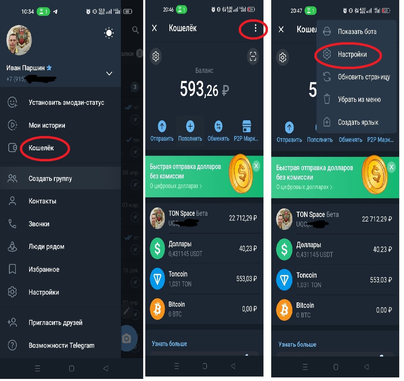 - Открываем кошелёк через меню в телеграмме