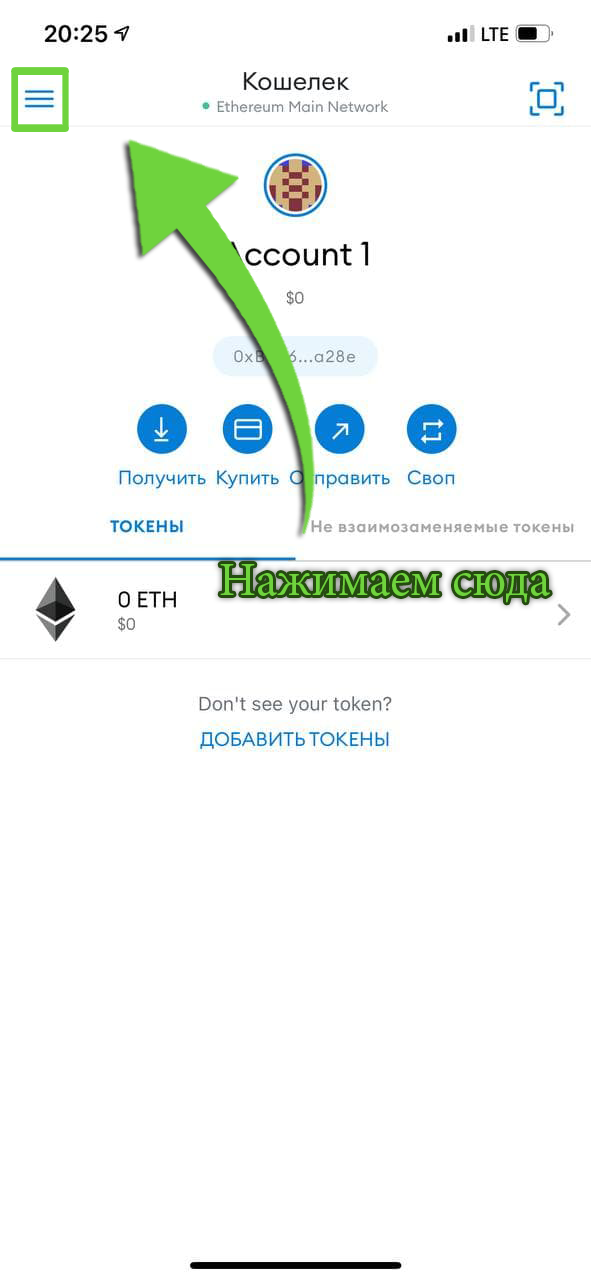 2. Заходим в приложение и нажимаем сюда (см. скрин)