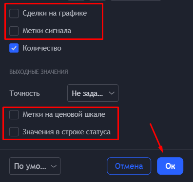 Для удобства, советую отключить эти галочки в настройках индикаторов: