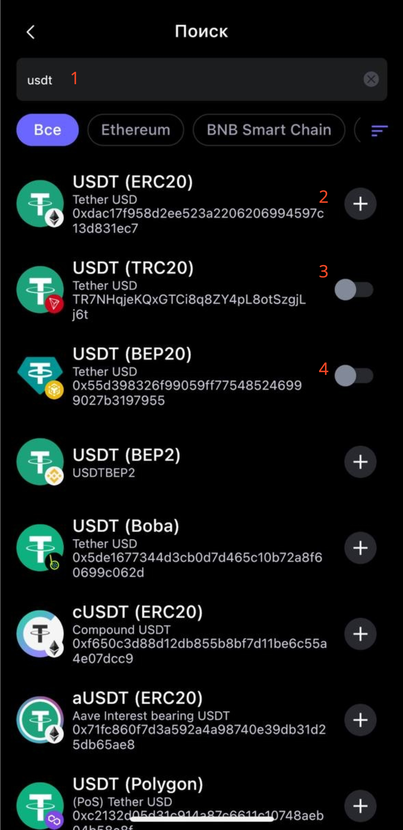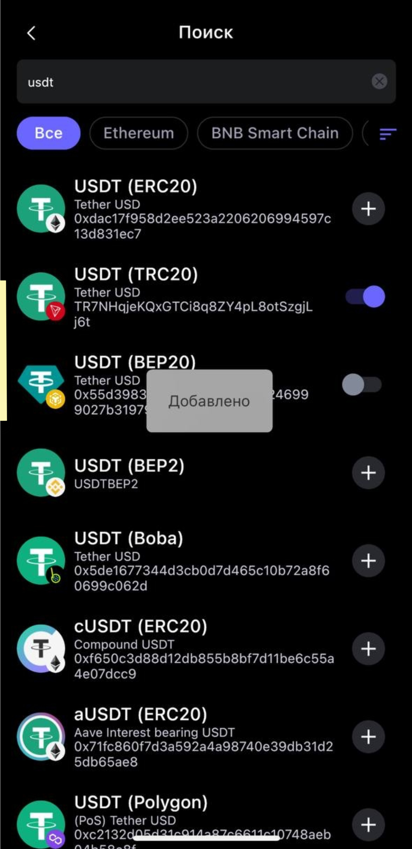Теперь сделайте тоже самое с USDT ERC20 и USDT BEP20