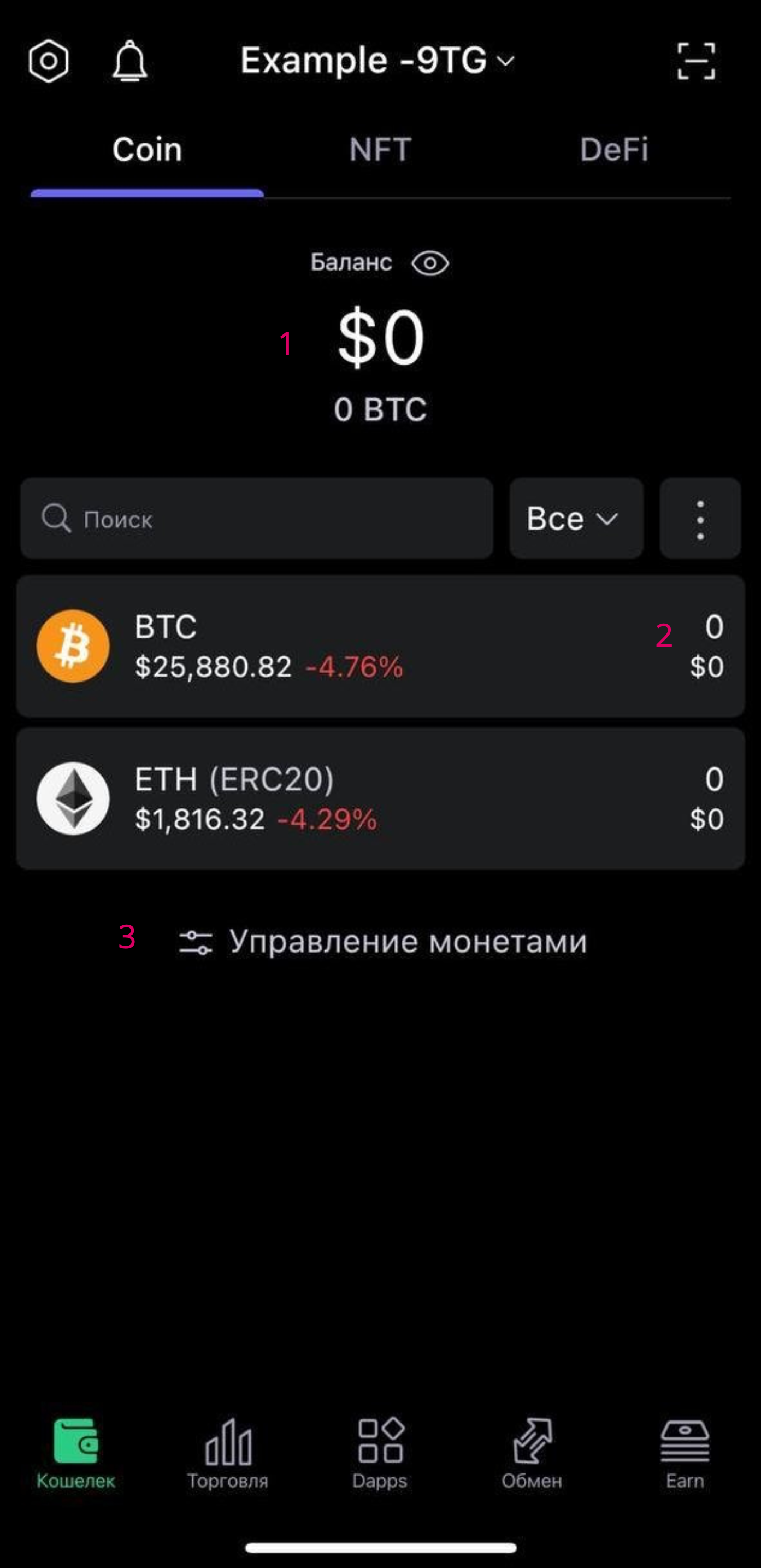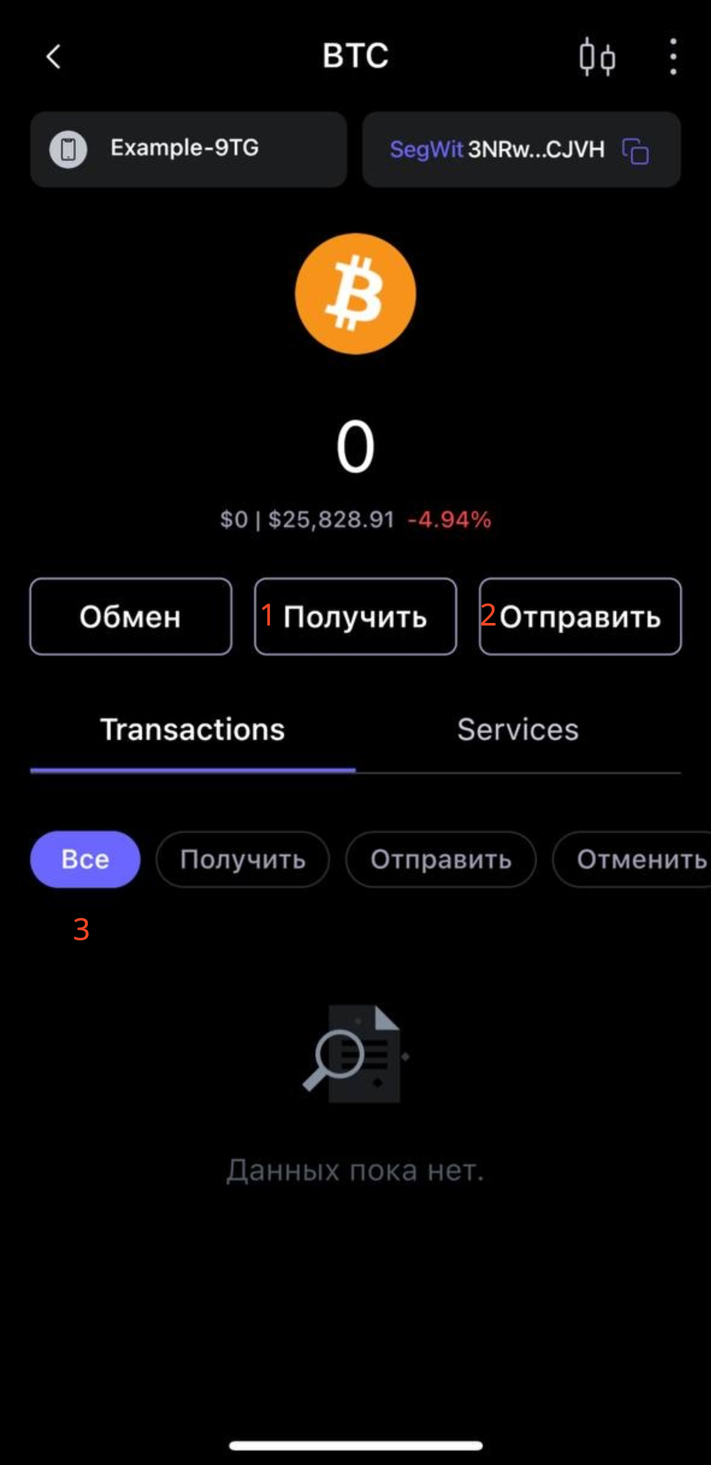 (3) Здесь будут отмечены все транзакции вашего кошелька