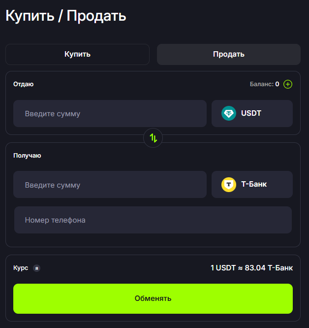 - Сколько USDT вы получите.