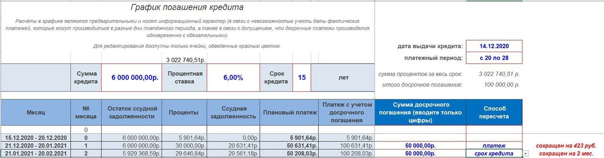 Как посчитать частично досрочное погашение