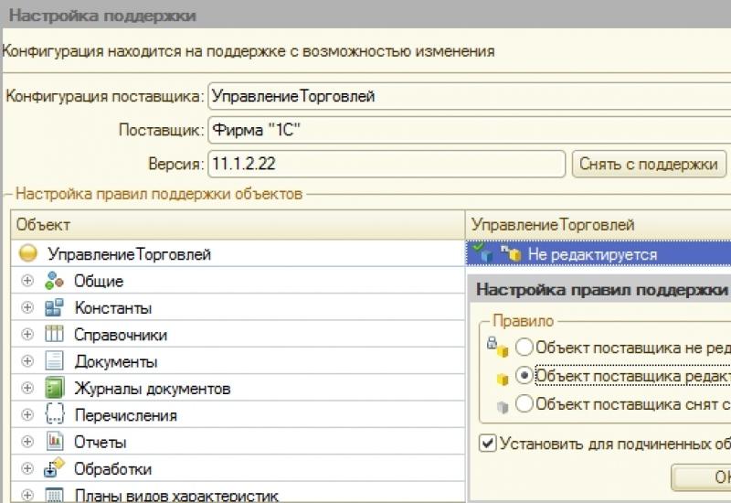Как поставить конфигурацию на поддержку