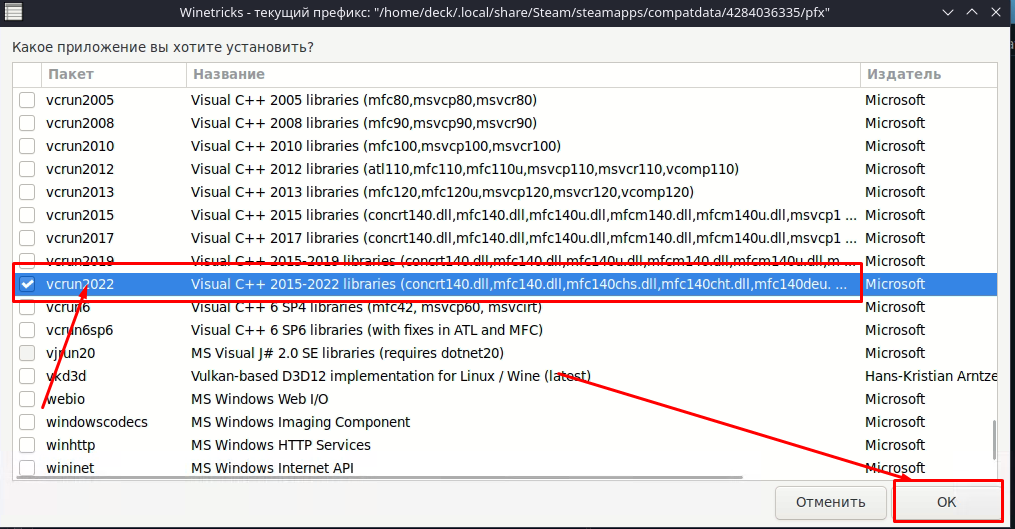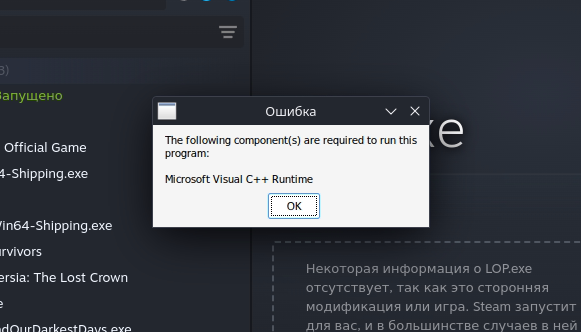Как видим везде одинаковая закономерность. - Если игра все ровно не запускается, то требуется установить дополнительную библиотеку vcrun2022, Вы можете это сделать при помощи Protontricks, или установить в тихом режиме при помощи скрипта от группы Steam Deck Helper выбрав соответствующий пункт: !Microsoft Visual C++ 2015-2022.
