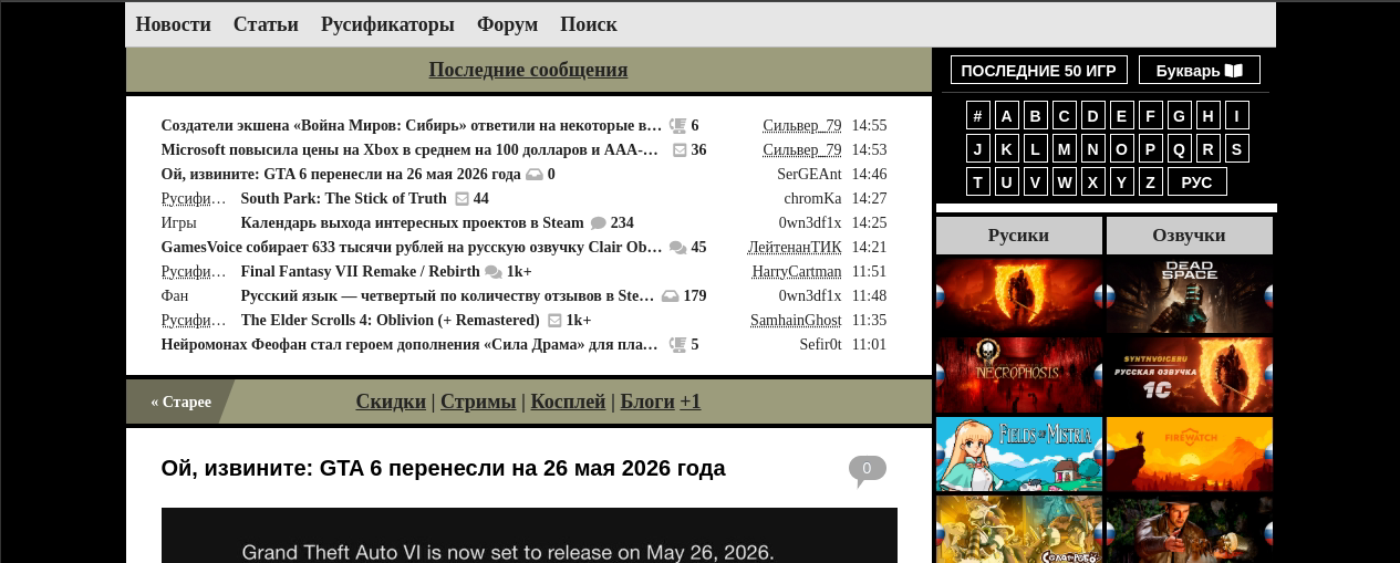 Русскоязычное сообщество с новостями о игровой индустрии, множеством модификаций и улучшений для игр, а так же русификаторам.