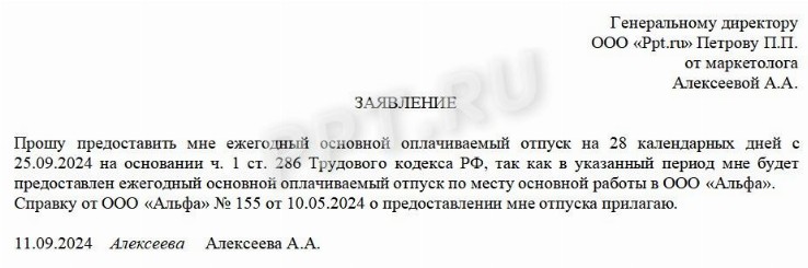 Как предоставить отпуск совместителю 117 фото