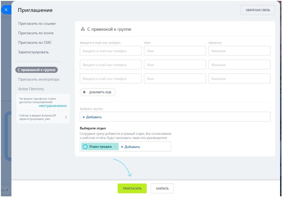 Как пригласить в битрикс