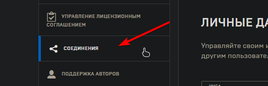 #10. Далее в "Соединения", раздел "Учетные записи".