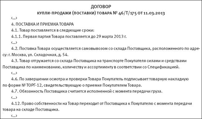Как прописать доставку товара в договоре