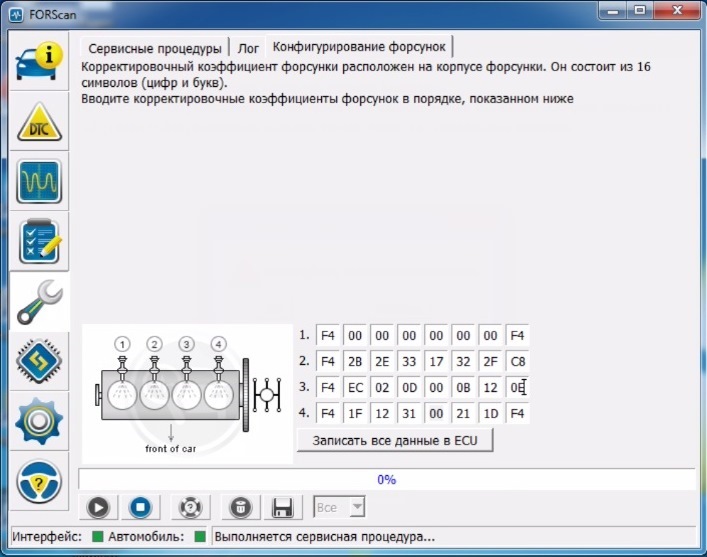 Как прописать форсунки форд