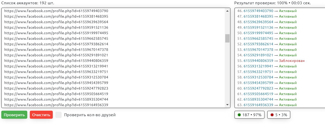 2. А также проверить аккаунты на валидность вы можете с помощью сервиса - https://checker.fb.rip/