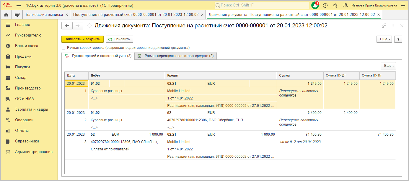 Как проверить курсовые разницы в 1с 8.3