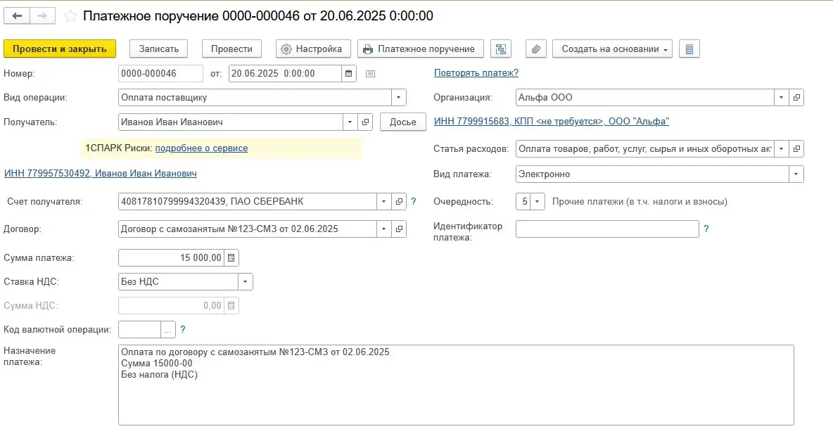 Как провести платеж самозанятому