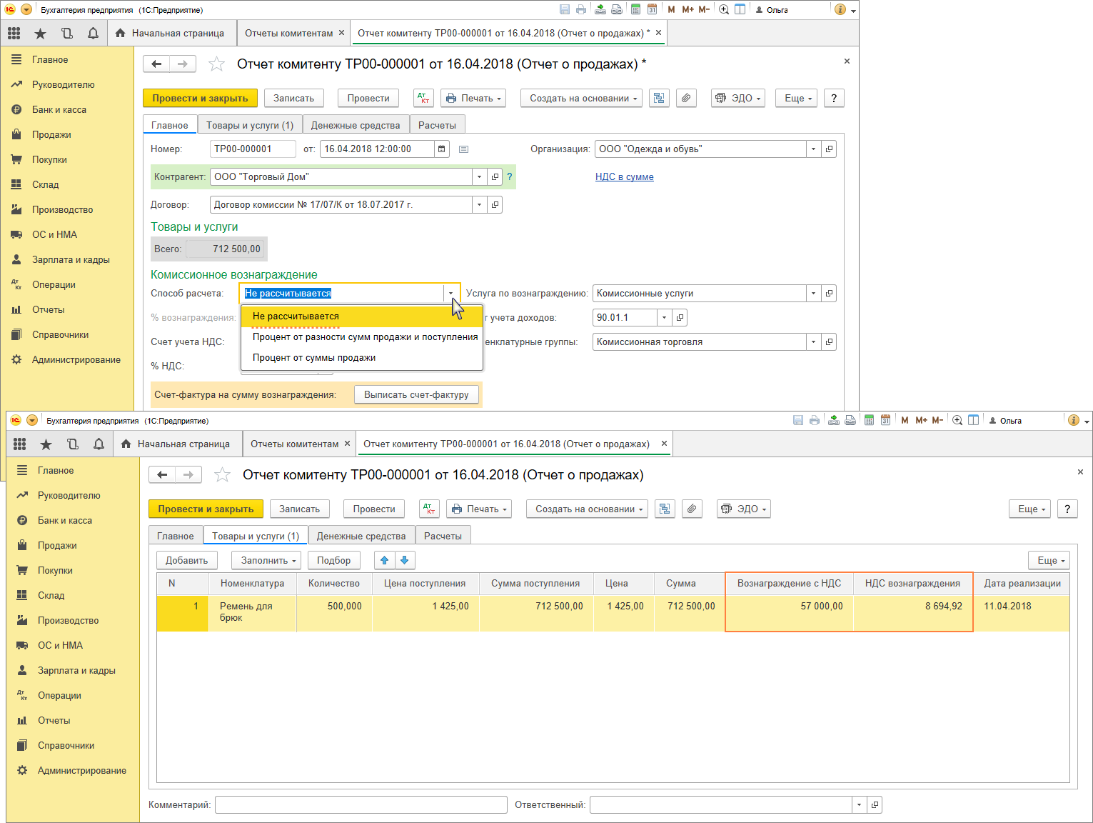 Как проводить агентское вознаграждение в 1с 8.3