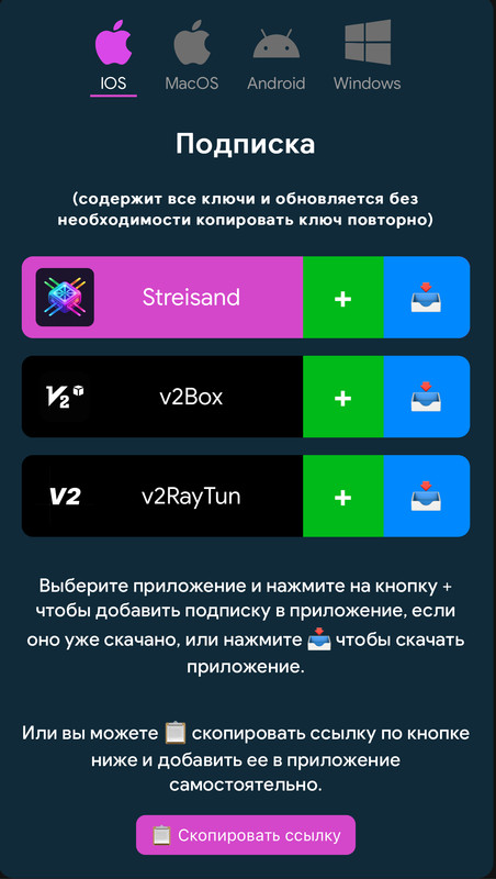 Подписку не придется каждый раз добавлять в приложение по новой, если вы покупаете новый ключ ВПН, к примеру другой страны или же если с вашим ВПН возникла проблема, стал плохо работать, в следствии чего пришлось обновить ключ.