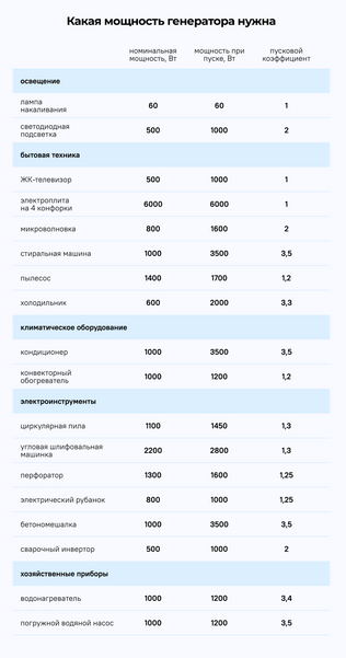 Как рассчитать мощность генератора для дома