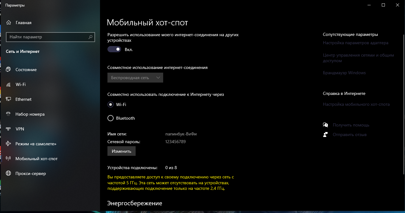 ВАЖНО! В целях энергосбережения Виндовс отключит хот-спот через некоторое время, если ни кто не подключился.