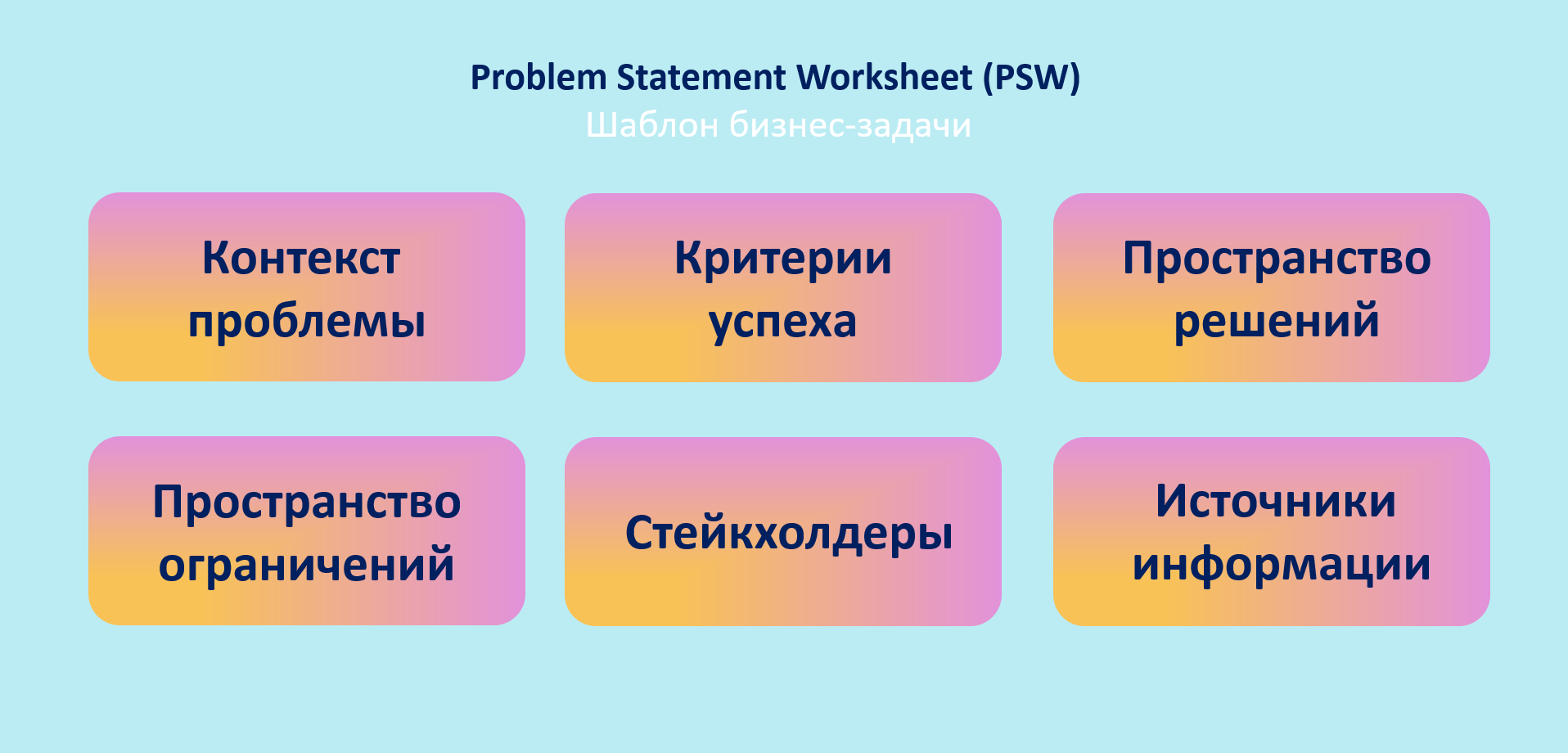 По нашей договоренности: 15 мин в день на развитие, все в один пост не влезет, поэтому будем разбираться постепенно. С постановкой цели по SMART вы уже знакомы, поэтому сегодня разберем инструмент Problem Statement Worksheet (PSW), переводя на наш родный язык - Шаблон бизнес задачи. Это может оказаться полезным при решении любой проблемной задачи на работе, в том числе при работе с OKR 😎 В свое время этот инструмент был разработан консультантами McKinsey & Company.