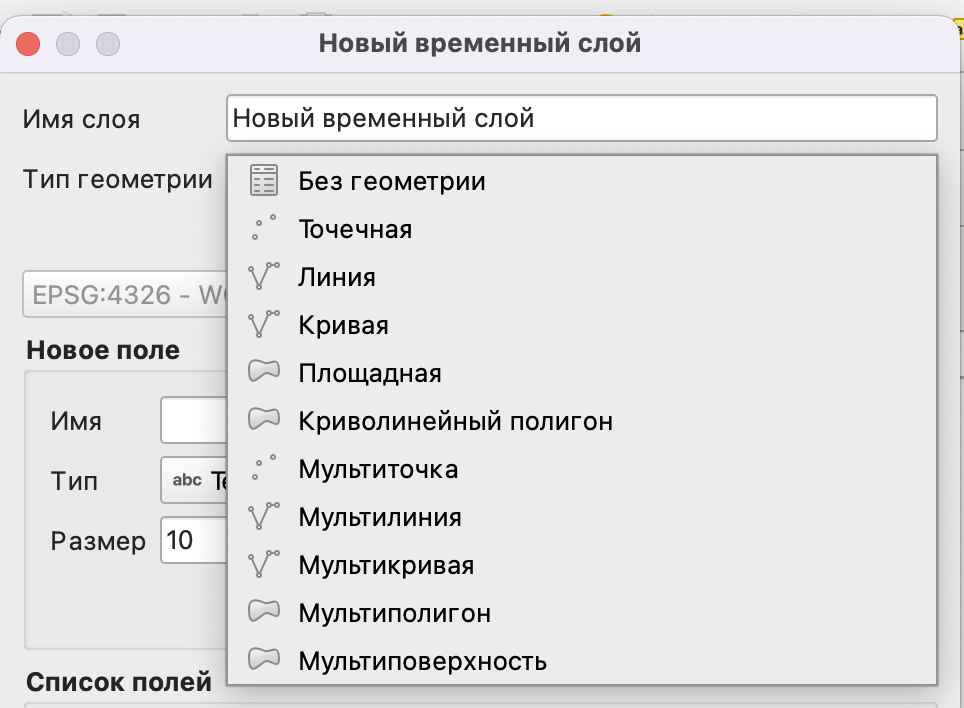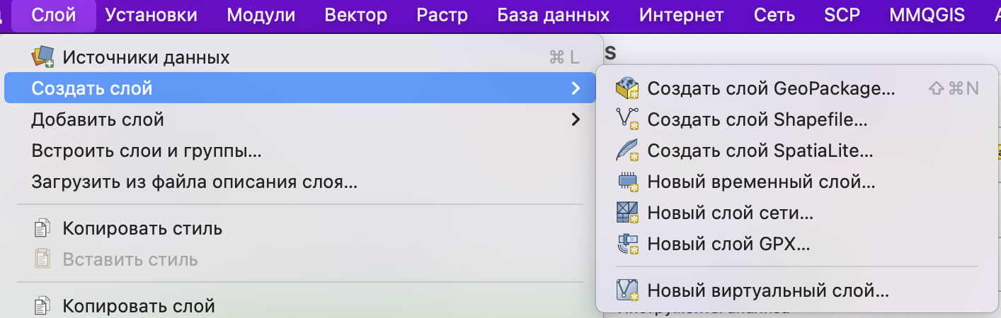 1) В QGIS создаем новый слой любым удобным способом