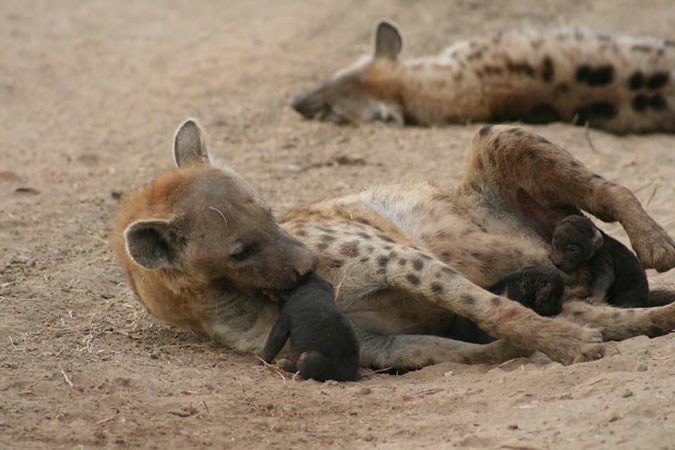 Как рожает самка гиены