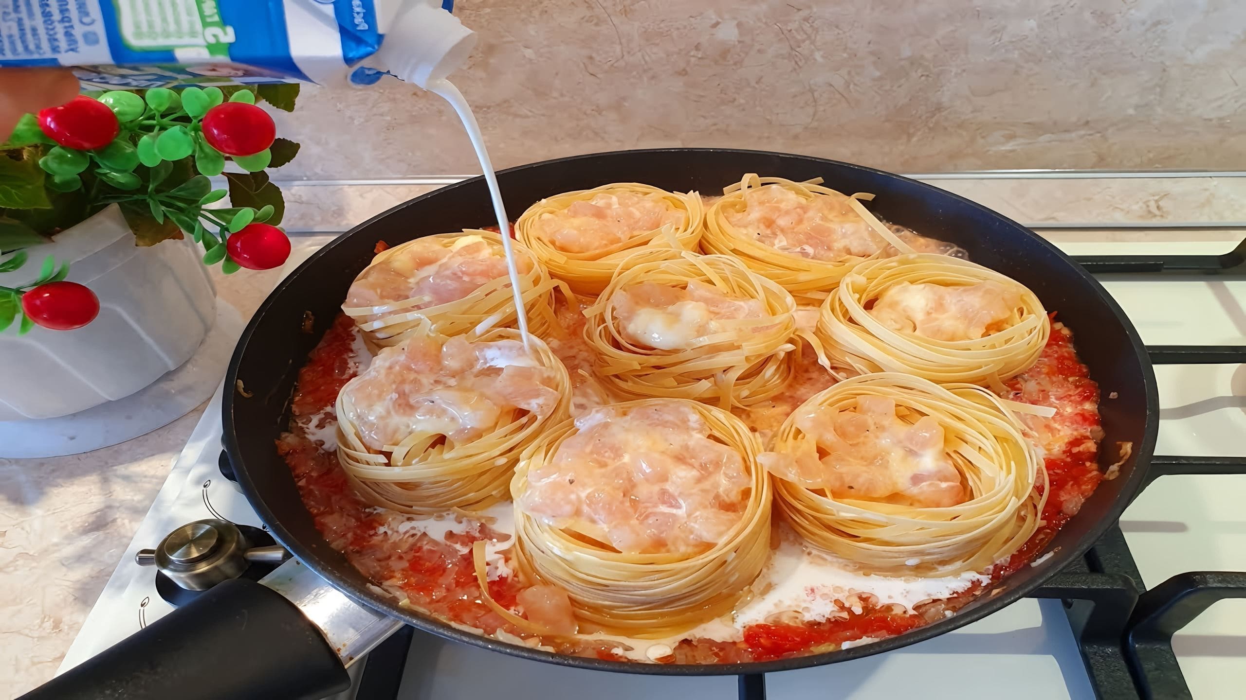 Как сделать макароны гнезда на сковороде 89 фото