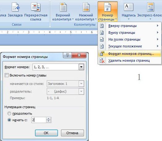 Как сделать нумерацию страниц без 1