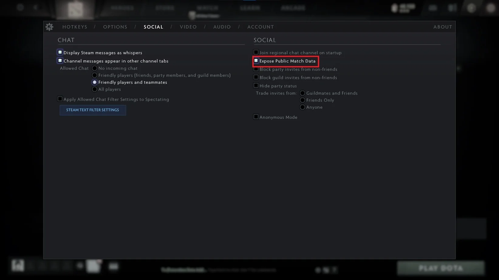 Как скрыть матчи в доте 2