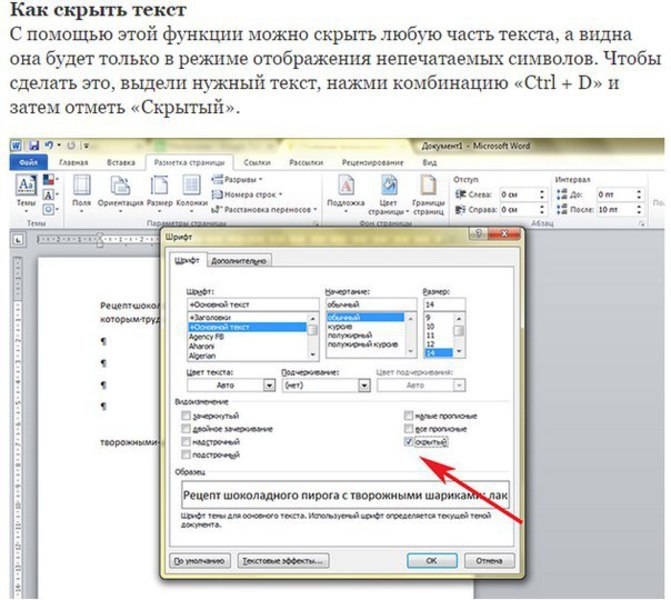 Как скрыть текст в то