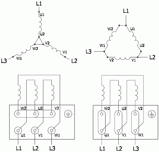 Как соединить обмотки треугольник