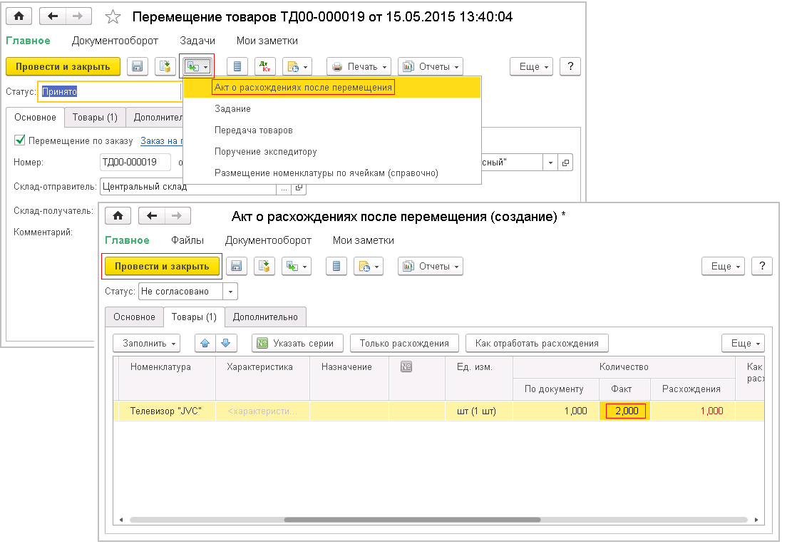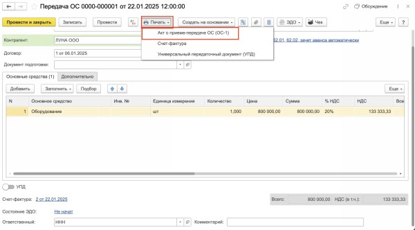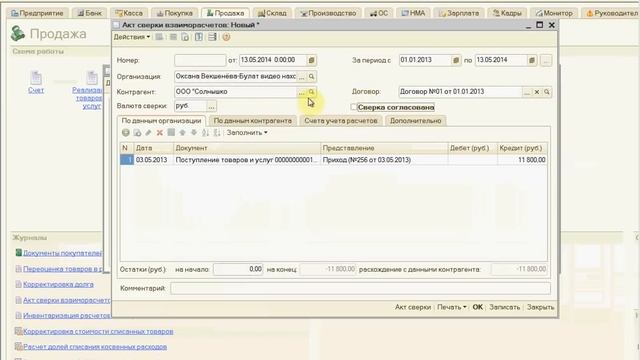 Как составить акт в 1с