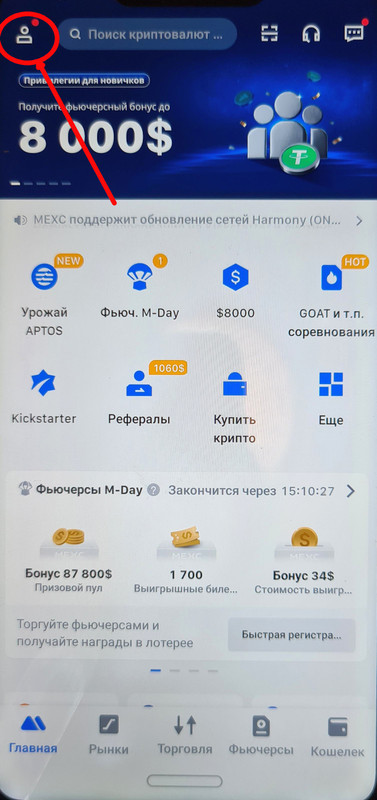 - На главном экране идем в свой личный кабинет: