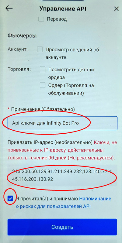 Поэтому полученные ключи отправьте СЕБЕ на почту, чтобы не потерять. Напишите комментарий - "API ключи для Infinity_Bot_Pro".
