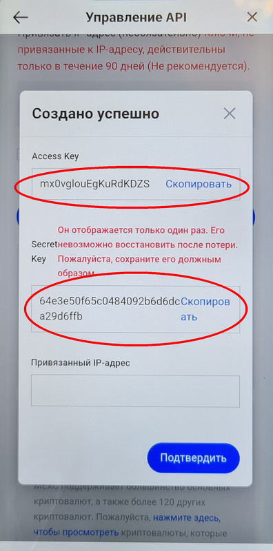 Как создать API ключи на бирже MEXC