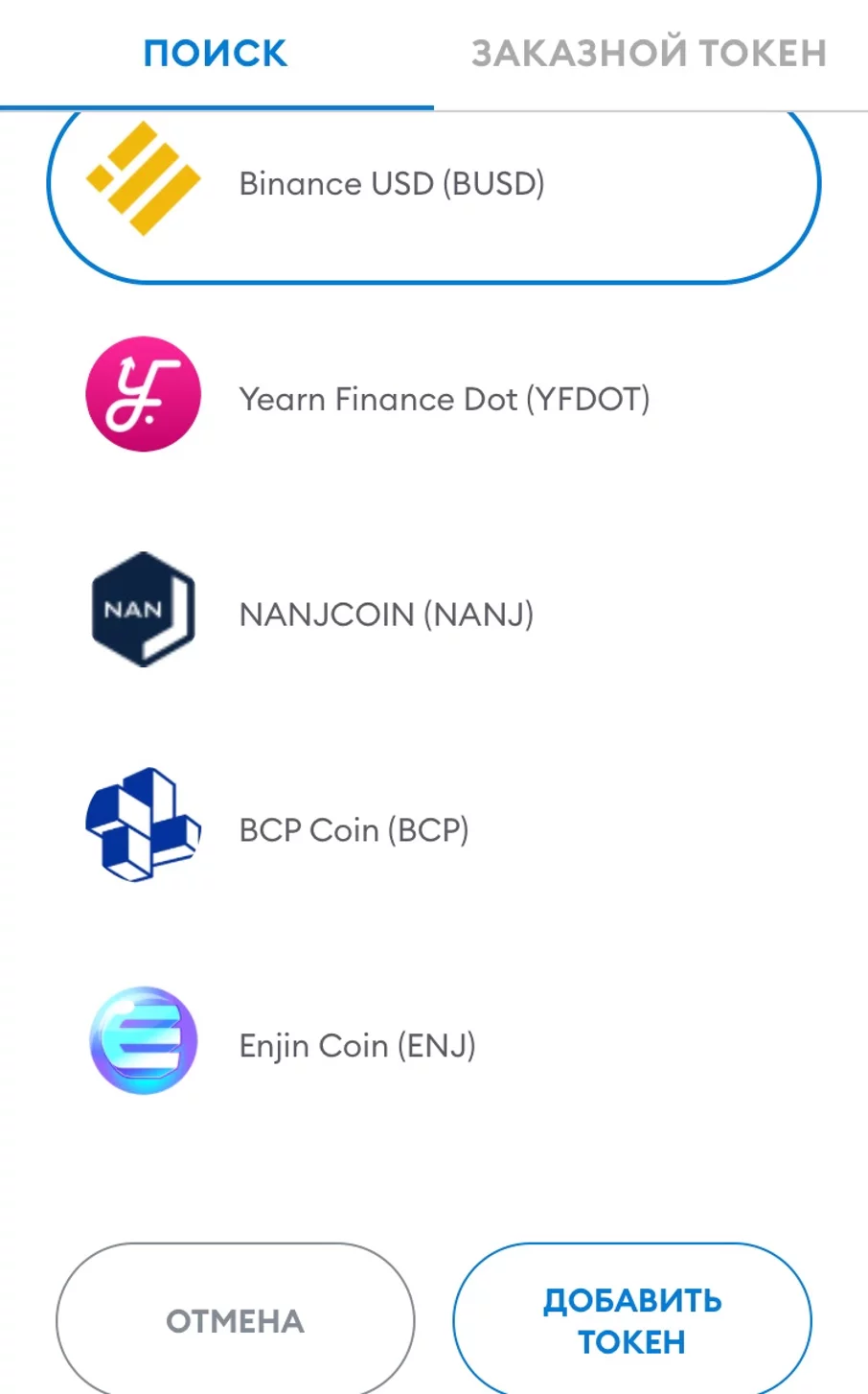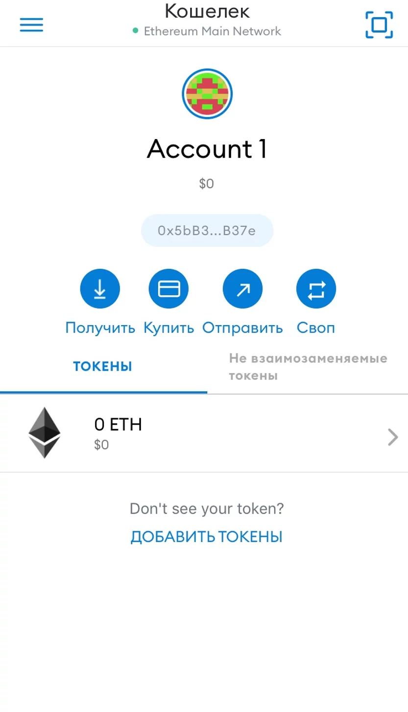 - добавить любой токен;