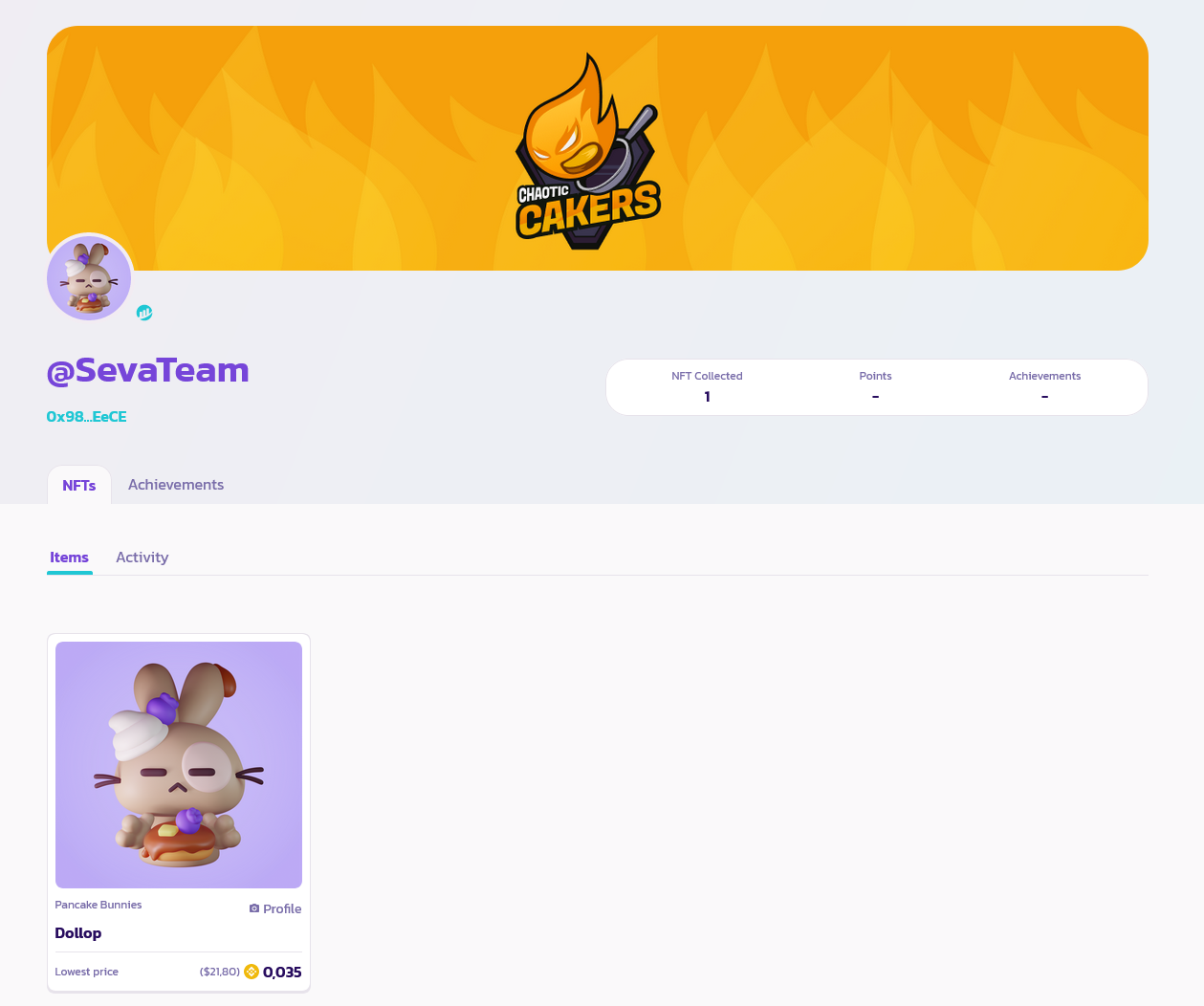 11. Всё, профиль создан. За его создание начисляют NFT, которую всегда можно продать на маркетплейсе Pancake. Но если его продать, то ваш профиль деактивируется.