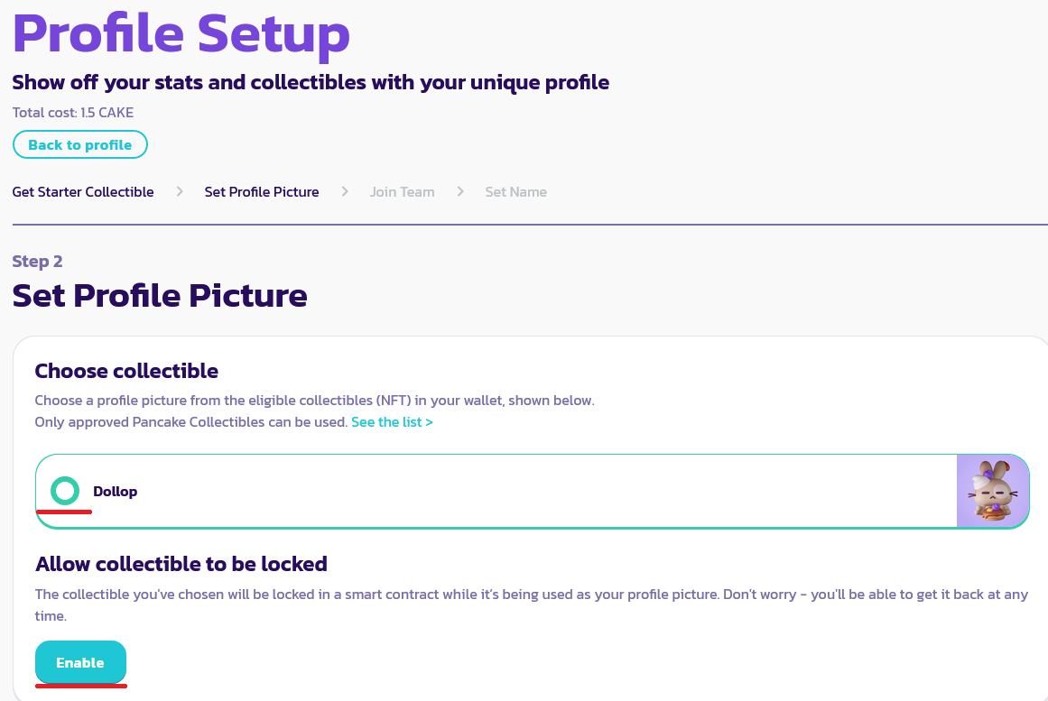 4. Выбираем свою будущую аватарку и кликаем на "enable". После этого снова выйдет транза, которую мы одобряем.