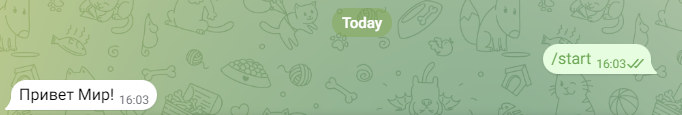 Напишем простую функцию, которая будет отправлять сообщение при нажатие команды /start. Пропишем такую строчку: