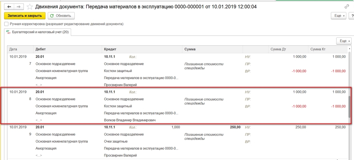 Как списать спецодежду в 1с 8.3