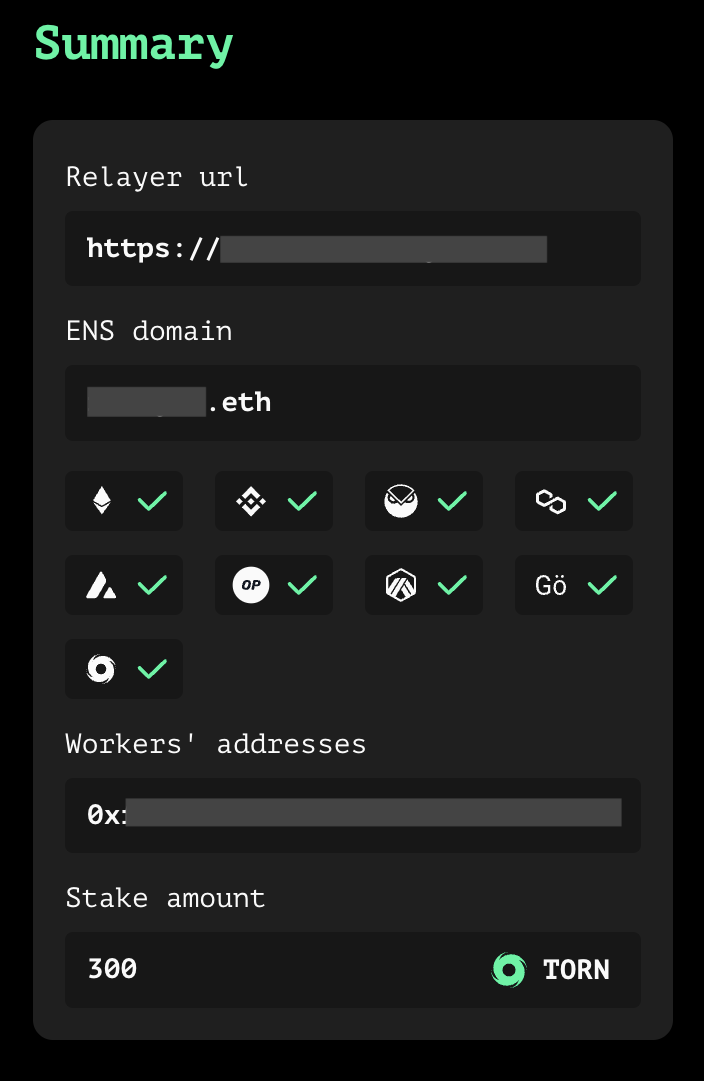 Этот фактор важно иметь в виду, поскольку relayers должны постоянно поддерживать баланс выше 300 TORN.