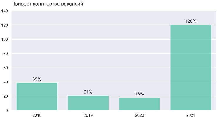Прирост количества вакансий по data science по данным сообщества ODS: