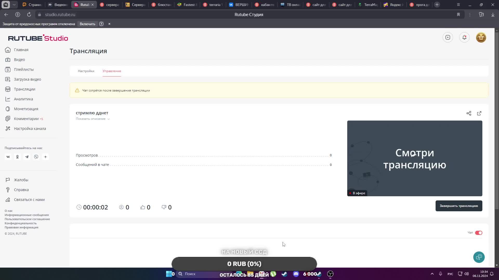 Как стримить через рутуб
