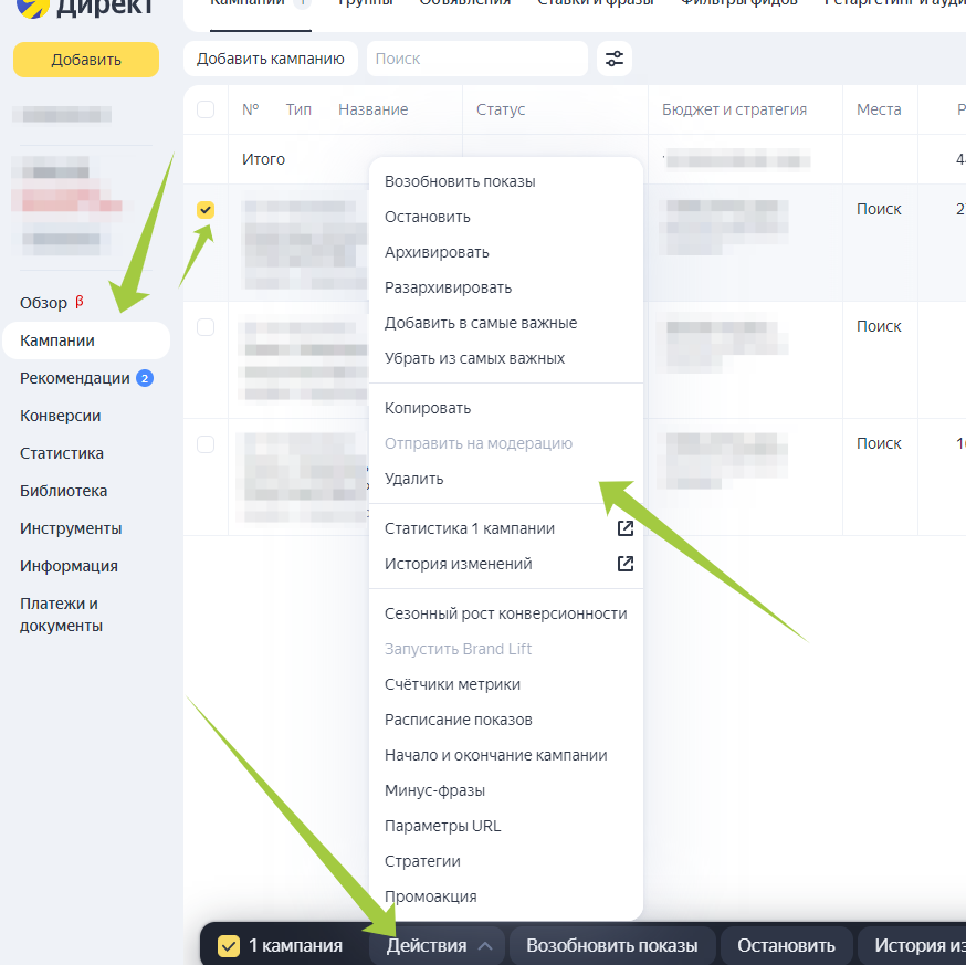 Как удалить объявление в директе