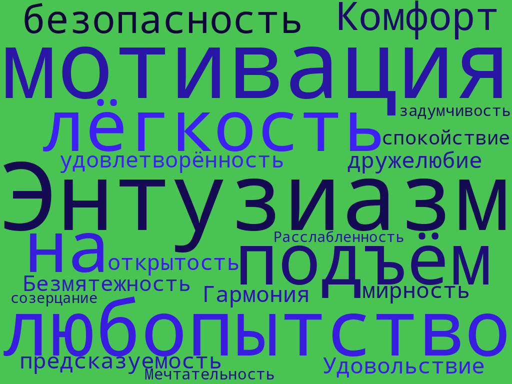 Горят глаза, мы с удовольствием что-то делаем, открыты новому, мыслим позитивно, терпеливы и доброжелательны, с энтузиазмом берёмся за задачи и испытываем предвкушение от новизны.