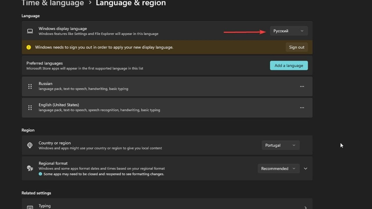 Как установить русский текст