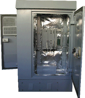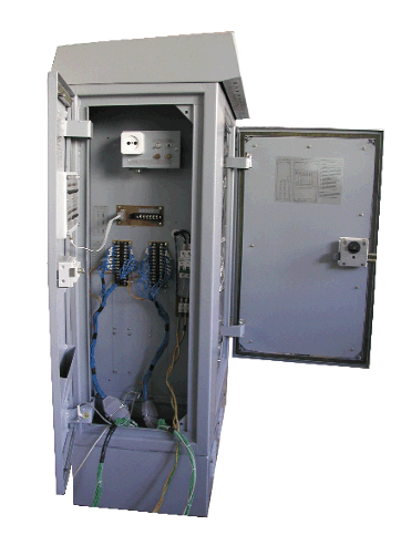 Представляет из себя влагозащищённый и очень хорошо (и высоко) закреплённый коммутационный шкаф. Стенки — 2 мм сталь. Сведений о системах теплоизоляции/климат-контроля и экранировании нет.